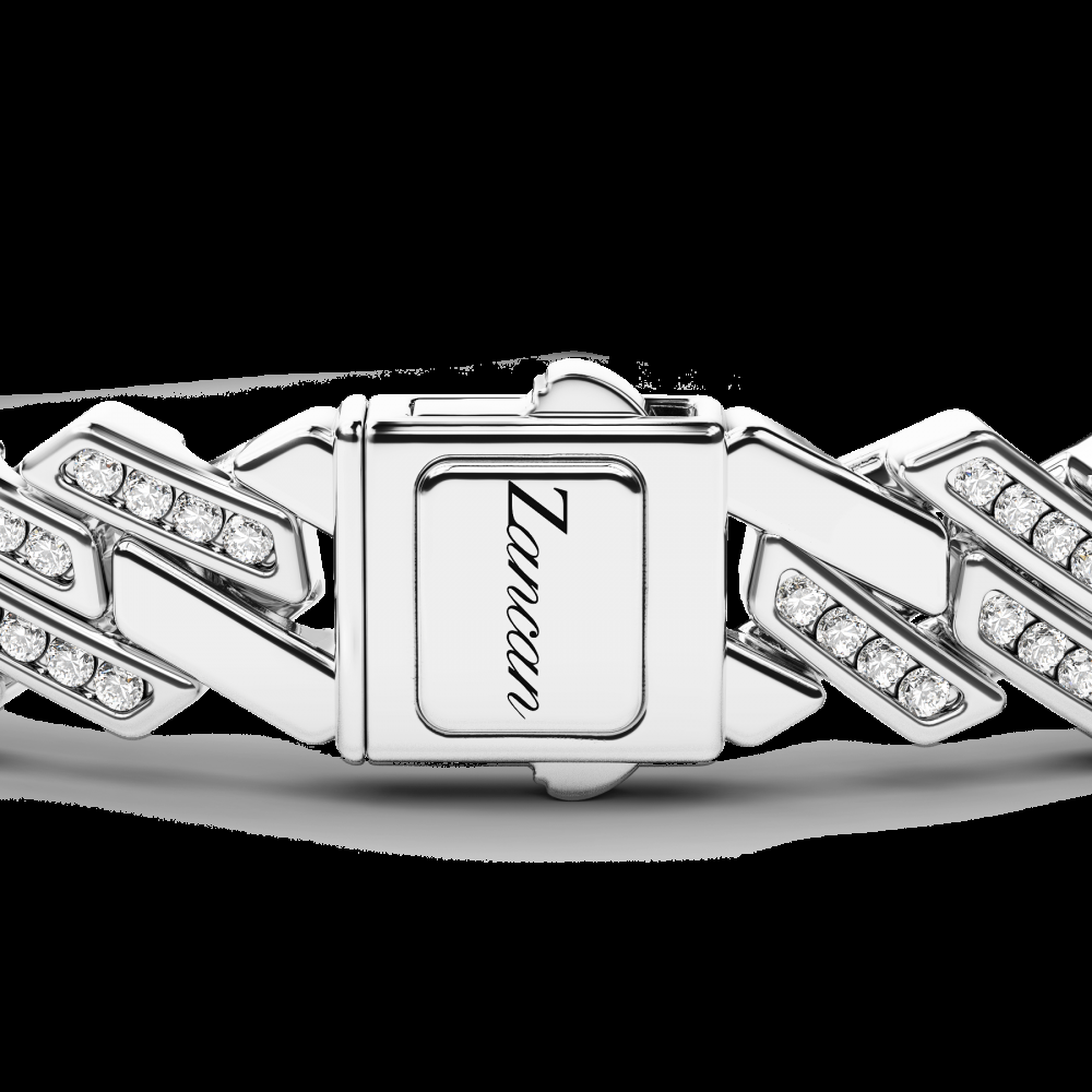 Bracciale a maglia morbida Zancan in argneto 925. Il bracciale è composto da maglie grumette reinterpretate e completamente tempestate di lucenti spinelli naturali. Un bracciale dallo stile ricercato e sofisticato con dettagli di grande valore. La chiusura scatto presenta il logo Zancan.