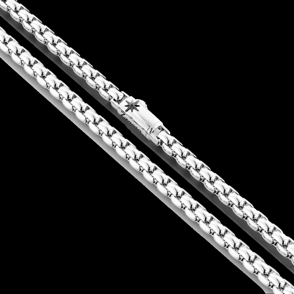 Collana in argento 925 dal peso di 69,80 gr. Trattamento in rodiatura lucida e brunita.Misura standard 50 cm.