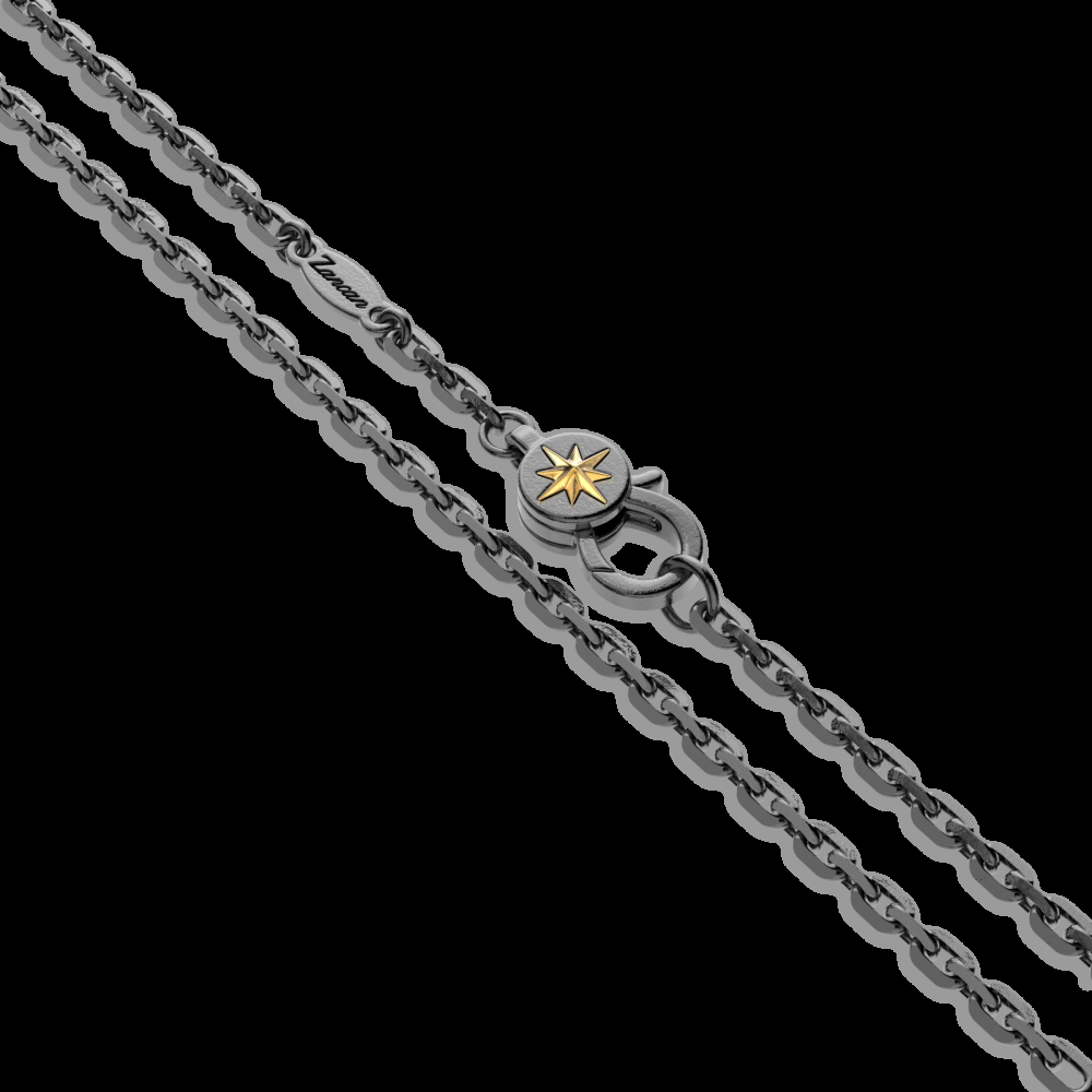 Collana Zancan in argento 925 realizzato con trattamento in rodio nero.La collana è caratterizzato da un pendente con timone in similoro.Il gioiello appartiene alla collezione Odissea che riprende i più antichi miti della mitologia greca, riproponendo in chiave moderna le avventure di Ulisse dell’omonimo capolavoro di Omero.Interamente realizzato a mano in Italia con un peso di 16,30. La collana ha una misura standard di 50cm.